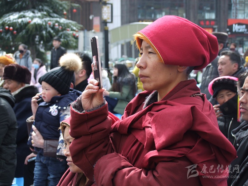 積雪還沒(méi)融化,雖然天氣寒冷、道路濕滑,卻絲毫不影響康定市民歡度藏歷新年的熱情。上午11時(shí),演員們?cè)缭鐏?lái)到了演出現(xiàn)場(chǎng),換裝、練聲……精心準(zhǔn)備著;工作人員們貼心的放上板凳,方便群眾觀(guān)看演出;臺(tái)上,動(dòng)聽(tīng)的歌聲、悠揚(yáng)的旋律、歡快的舞步吸引著觀(guān)眾的目光。臺(tái)下,觀(guān)眾熱情高漲,掌聲不斷。