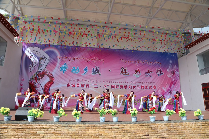 本網(wǎng)訊(吳遠(yuǎn)勝文/圖)3月7日,鄉(xiāng)城縣舉辦了“舞動(dòng)鄉(xiāng)城·魅力女性”慶祝“三八”婦女節(jié)舞蹈比賽。活動(dòng)中,廣大婦女身著民族服裝,隨著優(yōu)美的旋律載歌載舞。《阿拉斯布姆》《阿媽啦》《鍋莊聲聲》等14個(gè)精彩紛呈的歌舞節(jié)目,贏得了現(xiàn)場(chǎng)觀眾的喝彩和掌聲。圖為舞蹈比賽現(xiàn)場(chǎng)。