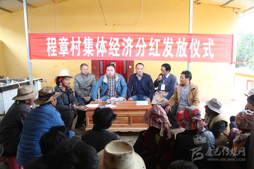 4月27日下午,雅江縣米龍鄉(xiāng)程章村熱鬧非凡、喜氣洋洋。 剛吃過午飯,村民們就齊刷刷地聚集到了村民活動室,等待村集體經濟首次分紅。