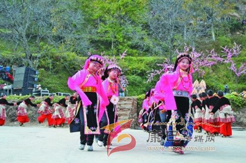 10月26日,在甲居藏寨,處處洋溢著豐收和歡樂的氣氛,人們扶老攜幼,身著節(jié)日的盛裝走到一起,來共同慶祝丹巴嘉絨風(fēng)情節(jié)的順利召開。在一塊空地中,搭建了臨時的舞臺,看臺上,幾座古碉模型傲然挺立,在不遠(yuǎn)處,一座古碉矗立在一座小山包上,與古碉模型遙相呼應(yīng)、相映成趣。上午9時40分,當(dāng)節(jié)目主持人宣布嘉絨風(fēng)情節(jié)正式開始時,一束束搖曳的煙花向空中飛去,在空中炸響后,散發(fā)出五顏六色的煙霧,其中有的還幻化成幾多小小的降落傘,就像多多盛開的鮮花在空中綻放。演出現(xiàn)場前的大地和遠(yuǎn)處的小山坡上到處都站滿了熱情的觀眾,合著禮花的爆裂時的響聲,將手中的小紅旗展開,高舉過頭頂,有節(jié)奏的左右搖動,霎時間,整個現(xiàn)場成為了紅色的海洋。