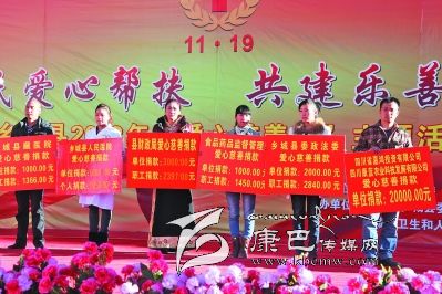 本網(wǎng)訊(何才華 文/圖)11月18日,鄉(xiāng)城縣愛心慈善募捐活動在該縣香巴拉休閑廣場舉行,來自全縣的機(jī)關(guān)干部、宗教界代表、個體工商戶代表、建筑施工企業(yè)等各界人士近2000人為需要救助者獻(xiàn)出自己的一份愛心?;顒蝇F(xiàn)場募捐資金532998元。