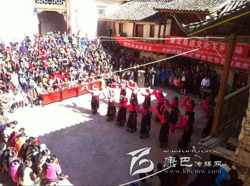 12月2日,康定縣捧塔鄉(xiāng)捧塔寺內(nèi)人頭攢動(dòng),熱鬧非凡,由康定縣旅游文化局組織的送文化下鄉(xiāng)惠民演出吸引了周邊的眾多群眾前來觀看。 演出在州歌舞團(tuán)演員歡快的舞蹈中拉開帷幕。一曲曲耳熟能詳?shù)母枨⒁恢е崆檠笠绲奈璧笧檗r(nóng)牧民群眾送上了一份文化厚禮。演出結(jié)束,意猶未盡的捧塔村民說:“今天一大早我就等在這里,農(nóng)村的文化生活簡(jiǎn)單枯燥,好久沒有看到這么精彩豐富的文藝節(jié)目了,它不但豐富了我們的文化生活,還宣傳了黨的惠民政策,這樣的方式比傳統(tǒng)的開會(huì)宣傳更能讓大家知曉、熟記各項(xiàng)富農(nóng)惠民政策,也更受大家歡迎,希望這樣的活動(dòng)以后能多多舉辦。”圖為演出現(xiàn)場(chǎng)。(李瑤 攝影報(bào)道)