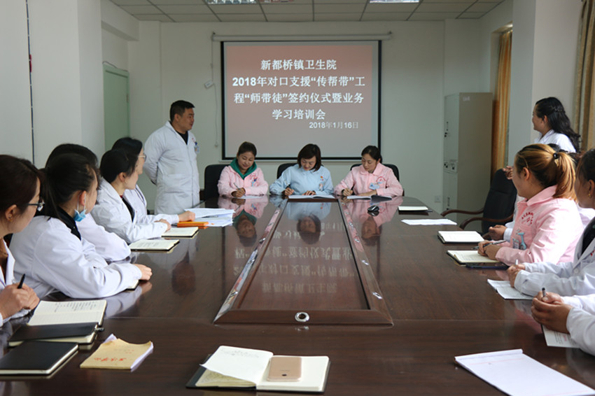 春風(fēng)沐浴、雨露滋潤(rùn);德隆情盛、高屋建瓴。為進(jìn)一步提升康定地區(qū)基層醫(yī)療衛(wèi)生機(jī)構(gòu)服務(wù)能力,打造一支有擔(dān)當(dāng)、有能力、可支撐的本土醫(yī)療衛(wèi)生人才隊(duì)伍。在對(duì)口幫扶工作中,康定市衛(wèi)計(jì)局高度重視本土人才培養(yǎng),將“傳幫帶”工作作為了重點(diǎn)。2018年1月8日,康定市疾控中心與都江堰市疾控中心通過(guò)座談商榷了“傳幫帶”幫扶方案,達(dá)成了共識(shí),下一步將通過(guò)對(duì)口幫扶,互訪交流、業(yè)務(wù)培訓(xùn),信息溝通共享等方式,在綜合管理、等級(jí)評(píng)審、人員能力建設(shè)、實(shí)驗(yàn)室檢驗(yàn)檢測(cè)能力建設(shè)、應(yīng)急處置能力建設(shè)等方面進(jìn)行重點(diǎn)“傳幫帶”。與此同時(shí),康定市第二人民醫(yī)院舉辦了對(duì)口支援“傳幫帶”工程“師帶徒”簽約儀式暨工作推進(jìn)會(huì)議。會(huì)上各位專家與選中的學(xué)員進(jìn)行現(xiàn)場(chǎng)簽約,雙方約定在今后的一年中,專家們通過(guò)理論培訓(xùn)、教學(xué)手術(shù)(操作)、教學(xué)查房、疑難病例討論、常見(jiàn)病多發(fā)病診治、開展新技術(shù)新業(yè)務(wù)等方面進(jìn)行指導(dǎo)、幫扶、協(xié)作,明確了各自的目標(biāo)任務(wù)和工作職責(zé)。