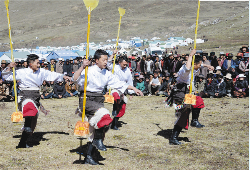 圖為理塘仙鶴藝術(shù)團(tuán)表演《打墻舞》。