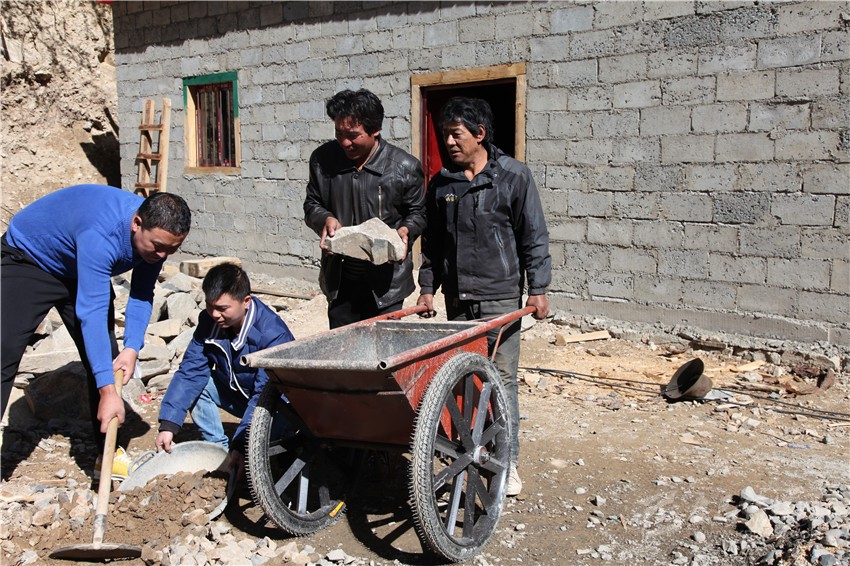 俗話說,一方水土養(yǎng)一方人,當一方水土不能養(yǎng)活一方人時,移民搬遷就成了最好選擇。這個行動遲緩的中年男子名叫洛絨,今年48歲。他眼前的這幢建筑面積100平方米的磚混結(jié)構(gòu)單層房子,盡管室內(nèi)地面還沒灌注水泥,房內(nèi)還沒裝修,但他對即將入住新房的那份喜悅一覽無余:“你看,這房子的前面是河、后面是山,太陽一出來就能照著,住起來肯定舒服;這三間房子就有四個大窗戶,光線照得進來,里面肯定亮堂;這一進門就是客廳,兩邊各有一套大大的房間,裝修好后只要把家具家電一擺上,肯定漂亮;……”正當他說得津津有味時,鄉(xiāng)上負責易地扶貧搬遷干部馬煜和包村干部鄭剛突然出現(xiàn)了他的眼前,他滿是感激地說:“其實,我知道你們都很忙,用不著隔三差五過來幫我,我保證十天之內(nèi)就把地面填平。況且再過幾天,我愛人就從山上挖蟲草回來了。有她打下手,兩個月內(nèi)我們一家人肯定就能住進新房子啦!”