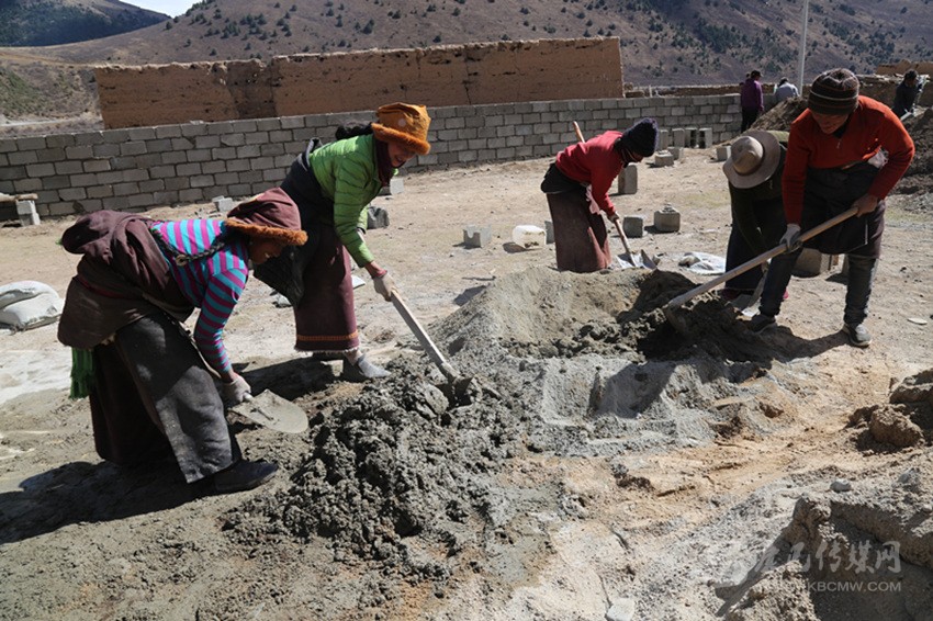 在工程實(shí)施中,全組的村民相互幫助,齊心協(xié)力建新房?!白蛱齑蠹?guī)臀野逊孔有薜冒桶瓦m適、漂漂亮亮的。我也來(lái)幫四郎曲西建房。這樣你幫我,我?guī)湍悖銕退?,要不了多久,我們這里家家戶戶都會(huì)很漂亮?!闭谠鹤永飻嚢杌覞{的村民格絨多登微笑著說(shuō)。