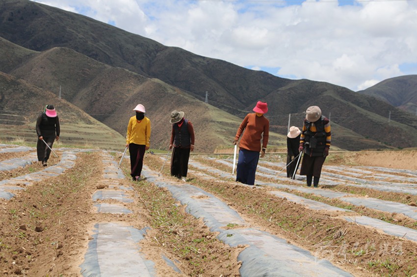 “把蔬菜種植技術(shù)學(xué)精通了,我就可以回家種菜,如果產(chǎn)量拿得上去,靠賣蔬菜,一年的收入也不少?!卑赚斍湔f(shuō),外出打工太遠(yuǎn),照顧不到家庭,而且除了開(kāi)銷一天還掙不到100元。她的丈夫澤翁降村帶著大兒子外出打工,去年3—6月就掙了2.3萬(wàn)元,定布村千畝蔬菜、中藏藥材高產(chǎn)有機(jī)示范種植基地開(kāi)建后,丈夫用自己的拖拉機(jī)在工地務(wù)工,一天給的工錢(qián)是500元,做了35天就掙了2萬(wàn)多元。