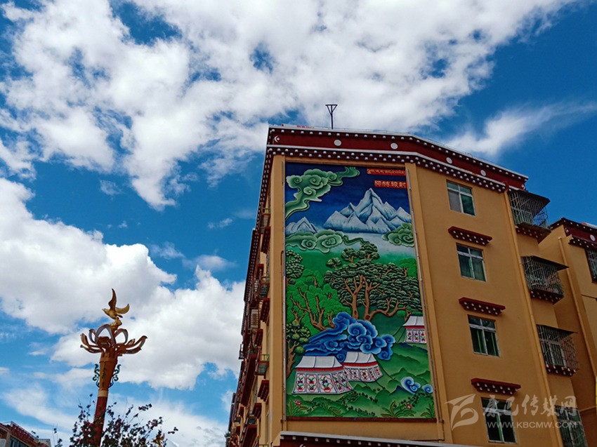 當(dāng)筆者一行走在巴塘縣城,墻體繪畫(huà)上“巴塘八景”躍然于上,“巴山積雪”“柳林較射”“桃園賞花”“板橋垂釣”“古桑抱石”“溫泉沐浴”“暖石回陽(yáng)”“老柳夾槐”色彩豐富、構(gòu)思精巧,平淡無(wú)奇的墻面因?yàn)橐环r活的繪畫(huà)變得生活,一面墻一幅畫(huà)一個(gè)故事。街頭巷尾,十字路口的“大鵬蓮花燈”“九眼天珠燈”“走馬燈”高高懸掛展示巴塘風(fēng)貌。以“茶馬古道”為主題打造的“最美古鎮(zhèn)”,悠悠古韻講巴塘故事,古色古香顯巴塘韻味……