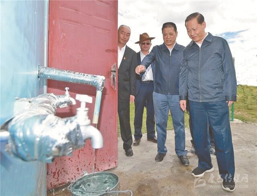 2020年6月15日,四川省委書記彭清華(右一)赴石渠縣查看包蟲病防治安全飲水建設(shè)、管理、使用情況,州委書記劉成鳴(右二)陪同。