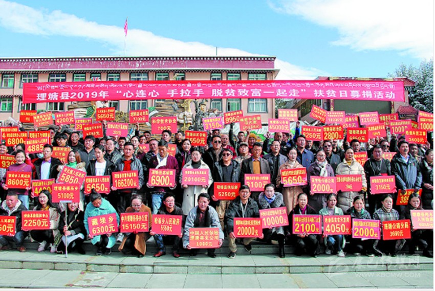 理塘縣開展扶貧日募捐活動現(xiàn)場。