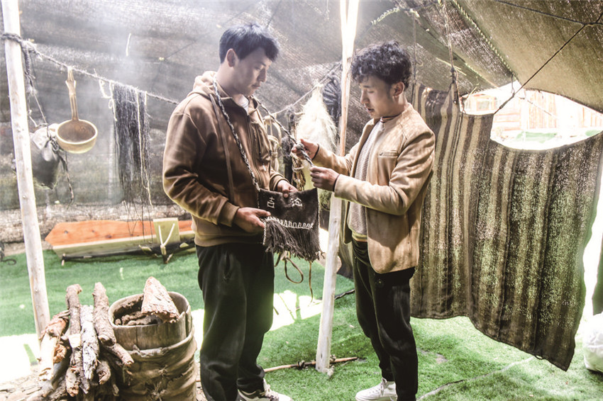 “這個(gè)掛包是牧民用牛毛純手工制作,一個(gè)掛包可賣(mài)上千元,游客們都喜歡?!睜柤棠氛f(shuō),吉滄民宿也是展示當(dāng)?shù)匚膭?chuàng)產(chǎn)品和農(nóng)特產(chǎn)品的一個(gè)窗口,讓游客能夠在這里買(mǎi)到貨真價(jià)實(shí)、物美價(jià)廉的土特產(chǎn)品。