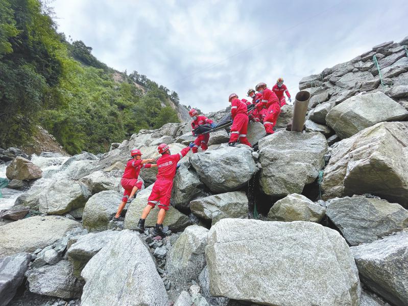 起初前突小隊目的地是得妥鎮(zhèn),那里剛好離家近,他可以第一時間知道家里的情況,但當支隊得知瀘定縣磨西鎮(zhèn)受災嚴重后,要向磨西鎮(zhèn)開進時,茍磊什么話也沒說,沒有向領導反映自己的情況,便跟隨支隊前指趕赴磨西鎮(zhèn)災區(qū)開展救援。