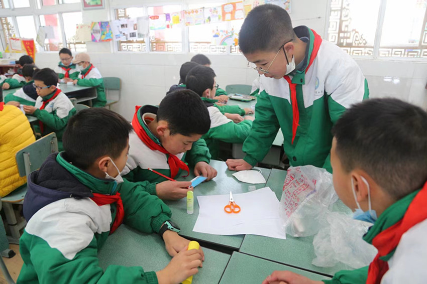 駐軍官兵給學(xué)生上國防教育課。