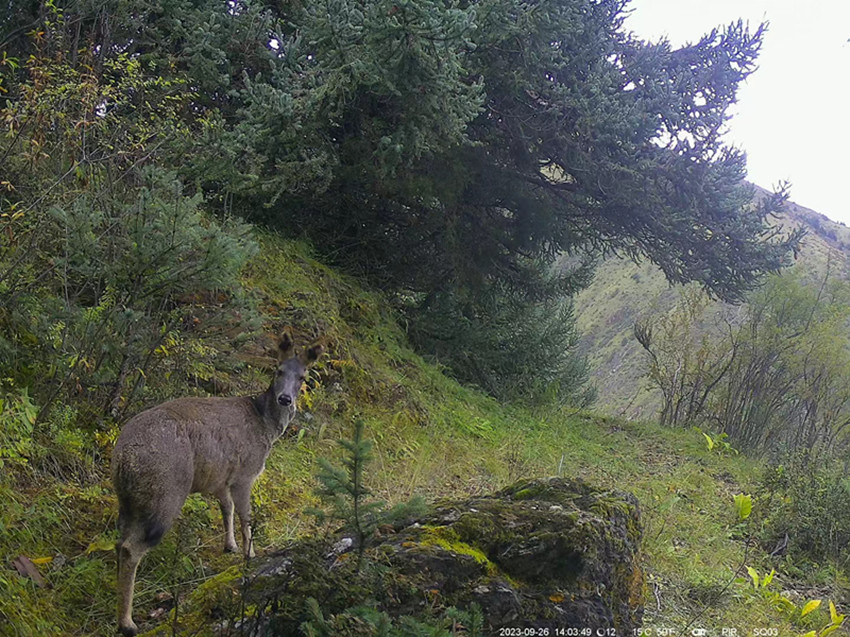 紅外相機(jī)影像資料顯示,一只金錢豹正走到石頭上眺望,一只棕熊媽媽正帶著幼崽經(jīng)過,一群白唇鹿在紅外相機(jī)前悠閑好奇的觀望……從肉食性、雜食性到植食性,野生動物們在鏡頭里的不時亮相,一定程度證明保護(hù)區(qū)內(nèi)生態(tài)系統(tǒng)功能健康,食物鏈結(jié)構(gòu)完整。