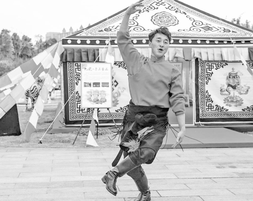 近日,成都青白江櫻花賞花季現(xiàn)場,九龍?zhí)厣a(chǎn)品展銷及文化交流區(qū)中,一群藏族姑娘、小伙正在為游客表演康巴歌舞。由兩名小伙表演的舞蹈《雪域驕子》贏得觀眾陣陣掌聲,他倆粗獷奔放的舞姿,時而化作展翅的雄鷹,時而化作奔騰的駿馬,展示出康巴漢子的熱情、勇敢。其中一位小伙子的表現(xiàn)力很強,深厚的舞蹈功底給大家留下了深刻的印象。他就是來自九龍縣格桑花藝術團的演員來讓次稱。