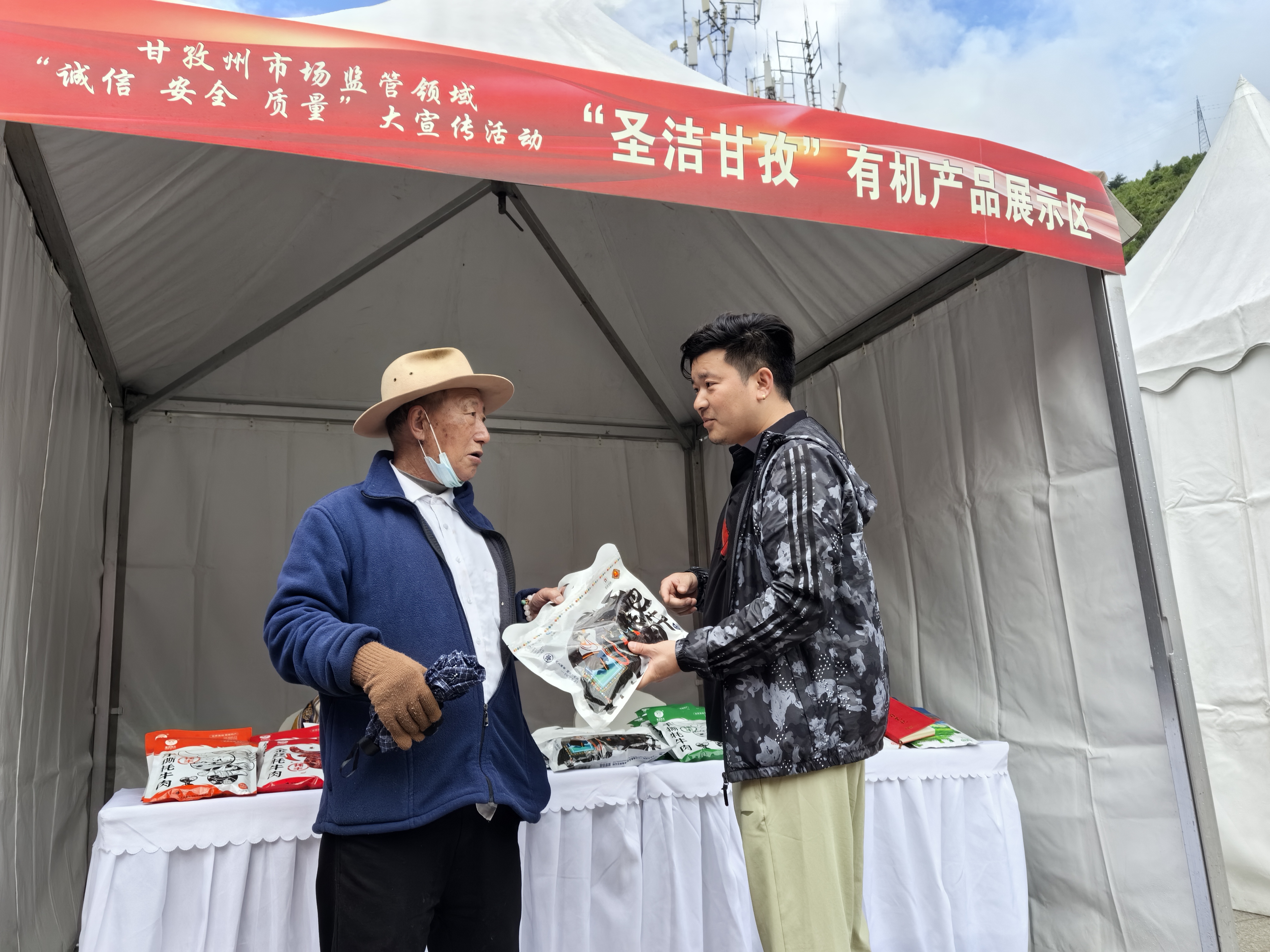 丈夫還未完成支付,妻子已經(jīng)迫不及待地撕開包裝品嘗起來。在“圣潔甘孜”有機(jī)產(chǎn)品展示區(qū),來自西安的游客孔大軍和陳繼霞夫婦買到心儀已久的“甘孜好物”?!皩?duì)甘孜特產(chǎn),我們?cè)瓉碓诰W(wǎng)上有所了解,昨天我們吃了正宗的牦牛肉湯鍋,今天又購(gòu)買到‘資格’的牦牛肉干,感受到甘孜質(zhì)量建設(shè)的成效,為我們此次旅游留下了美好記憶。”陳繼霞買到“心頭好物”,高興不已。
