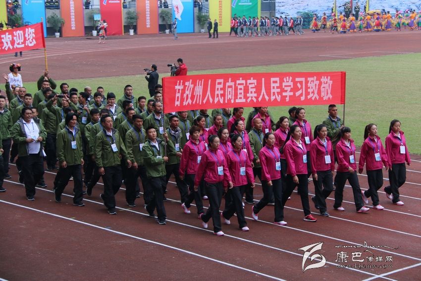 開幕式上,作為下一屆民運會的承辦方,我州代表團(tuán)打出了“四年以后甘孜見,甘孜人民歡迎你”的橫幅。