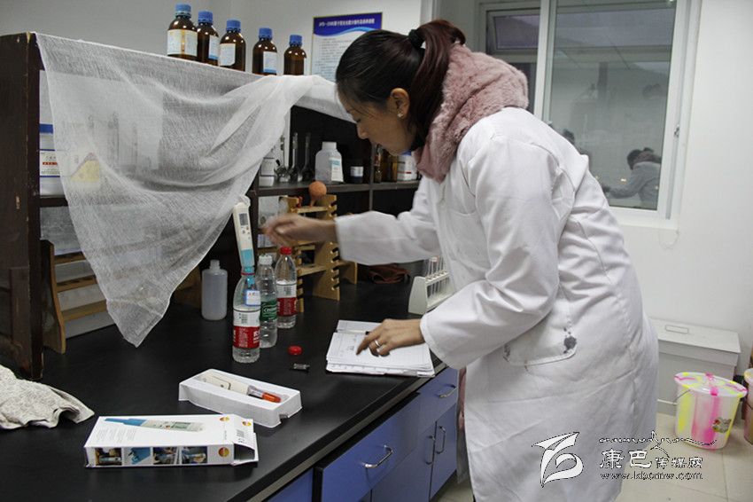 圖為監(jiān)測(cè)技術(shù)人員正在分析水樣。(圖片由州環(huán)保局提花供)