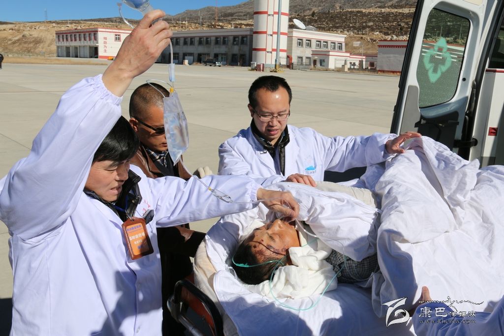 當日上午8時40分,州人民醫(yī)院醫(yī)護人員對該名傷員進行了轉運前的最后護理。隨后,救護車在綠色通道疏導下,直奔海拔4238米康定機場,在轉運的過程中,考慮到當?shù)馗吆0蔚那闆r,救護車上安裝了供氧裝置,醫(yī)護人員全程陪護,將送他到華西醫(yī)院救治。