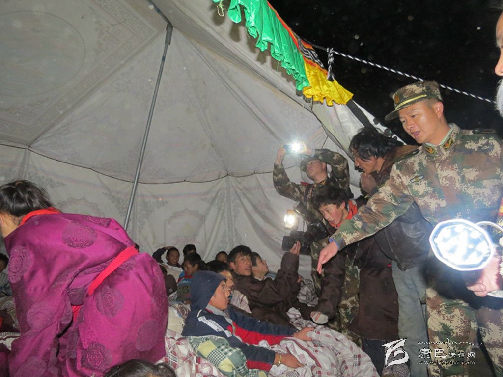 凌晨1時(shí),在江巴村,60名官兵挨家挨戶搜救轉(zhuǎn)移群眾,連夜搭建救災(zāi)帳篷。“同志,我的小女兒拉姆找不著了,可能埋在房子里了……”澤仁阿巴急匆匆地拉著武警戰(zhàn)士的手求援,“你家在哪里?快帶我們?nèi)ィ?rdquo;未等四十歲的澤仁阿巴說完,官兵們奔向不遠(yuǎn)處的一堆倒塌的房屋??紤]到有人埋在下面,官兵們不敢用鎬刨用鍬鏟,在另一面墻上石片不停掉落的情況下,仍然紛紛撲下身子扒拉土石結(jié)構(gòu)的殘?jiān)珨啾冢罱K在兩個(gè)木箱中間找到了已哭成淚人的小拉姆,所幸6歲的拉姆安然無恙。