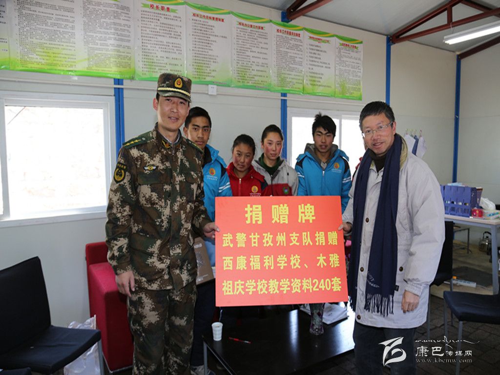 在康定縣西康福利學校、木雅祖慶學校臨時活動板房教學區(qū)校長辦公室內,該支隊向兩所學校捐贈了240套教學資料,并為5名結對特困學生贈送了保暖衣。據該支隊副政委朱平孝介紹,康定“11·22”地震發(fā)生后,他們了解到兩所學校的學生全在活動板房上課后,立即與學校取得聯(lián)系,結合實際給他們訂購了240套教學資料,用于充實學校教學。并結合部隊擔負任務和學校教學實際,將持續(xù)與學校開展愛心幫扶、國防教育、支教助學等共建共育活動。