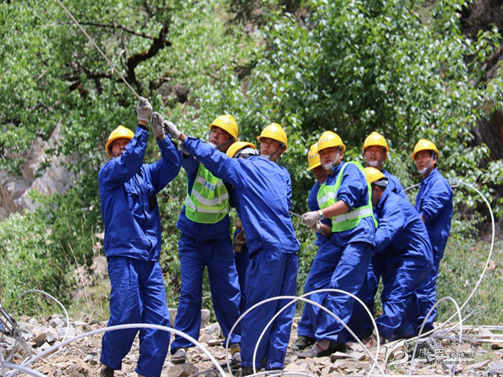 “辛苦”二字同樣印在工程管理者的工作中。手握對講機、身穿工裝的工程項目負(fù)責(zé)人龍森,此刻正頂著烈日在工地對一位工人叮囑施工事項。龍森是甘孜電力建設(shè)有限公司的工程技術(shù)人員,他對工程管理非常嚴(yán)格,如果工程進(jìn)度稍慢點,他就會焦急萬分。可每每看見工人們頂著烈日、冒著風(fēng)雨加班加點趕工程進(jìn)度時,龍森的心里也特別不是滋味。對這項工程的不易龍森深有體會。架桿初期,有些路段山坡土質(zhì)松軟,一遇到下雨就容易滑坡塌方,為了不影響工程進(jìn)度,龍森和工友們常常要一邊做“修路工”的工作一邊做“架桿工”的工作。龍森說:“最苦的是,這里有些路段車輛根本無法進(jìn)入,一根電桿重1.2噸,要靠十多名工人用繩索和木頭抬進(jìn)工地。德差鄉(xiāng)距離縣上有170多公里,單程就要4小時,工程緊的時候一周要往返縣上兩三趟。還記得有一次車胎在海拔近5000米的呷布科山上爆了,山上手機沒有信號,得不到救援,餓了我們就在山上吃點自帶的干糧,等了近半天才等到一位騎摩托車的老鄉(xiāng)路過,回到休息地的時候已經(jīng)是半夜兩點多了。”說到這里,龍森無奈地?fù)u了搖頭。世上無難事,只怕有心人。龍森說,這段路線的電桿已經(jīng)全部立起來了,現(xiàn)在只剩下架線的工作。一定要搶在月底之前為這兩個村通上電。