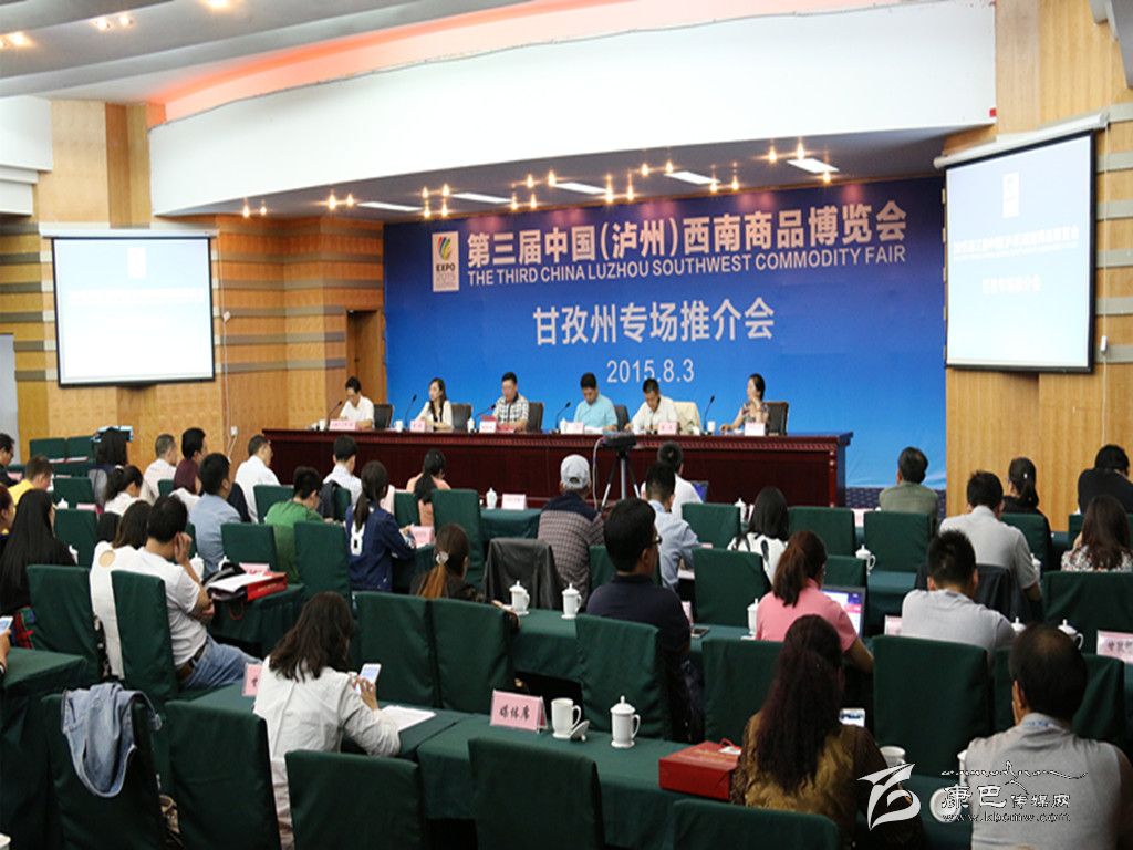 本網(wǎng)訊(記者 宋志勇文/圖)8月3日下午,由瀘州市人民政府舉辦的2015第三屆中國(瀘州)西南商品博覽會(以下簡稱“商博會”)專場推介會在我州康定市舉行。組委會期望通過商博會這一平臺,進一步加強和推動瀘州、甘孜兩地商貿(mào)領域的合作交流,與甘孜州的企業(yè)、產(chǎn)品共同開拓西南區(qū)域市場,提高我州企業(yè)、產(chǎn)品的市場占有率。