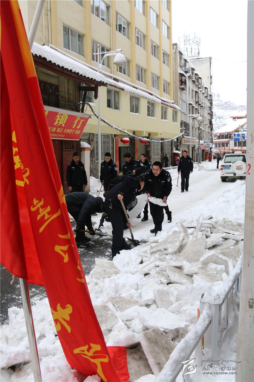 州公安局共產(chǎn)黨突擊隊(duì)正在東大街除雪。