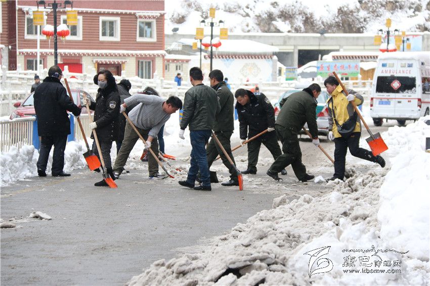 從22日上午起,記者在康定城區(qū)大街小巷看到,駐州部隊官兵以及部分單位職工緊急行動起來,清掃積雪。根據州委、州政府的安排,州直屬機關工委也于22日向州級部門、省屬單位各基層黨組織發(fā)出緊急通知,并逐一劃分責任片區(qū),組織干部職工集中清理辦公區(qū)、住宿區(qū)、街道積雪,確保道路安全暢通。 按照劃分的責任片區(qū),州級機關行動迅速,到處可以看見干部職工揮動鐵鏟除雪的忙碌身影。23日上午10點過,記者看到從藏族小學到州委黨校的路段上,州委黨校和州檔案局的干部職工正在清除積雪。“大雪影響了這段路上居民的出行,積雪很深,給清掃帶來極大困難。州直機關工委號召機關單位干部職工積極行動起來清理積雪,這是與人方便,也是與自己方便。積雪清掃干凈后,走在路上不需要擔心被滑倒。”州委黨校教師扎西說。