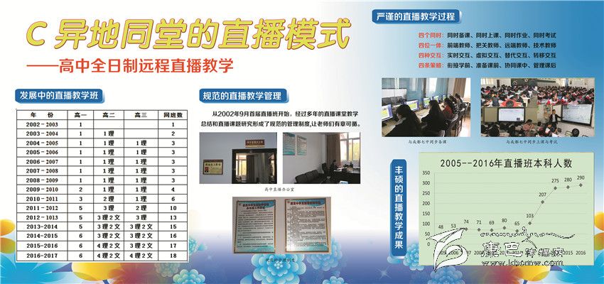 2002年以來康定中學立足民族地區(qū)教育實際,依托成都七中優(yōu)質教育,先后開通成都七中高中直播班、初中錄播班,建成初中遠程直錄播教學AB平臺,實現(xiàn)了與國內名校共享優(yōu)質教學資源的目標,將網(wǎng)課教學打造成學校教育品牌。經過近5000名師生員工的不懈努力,2013年來,康定中學連續(xù)4年高考硬上本科人數(shù)突破200人大關。先后有8名學生被北京大學和清華大學錄取。中考綜合評比連續(xù)9年保持全州第一。
