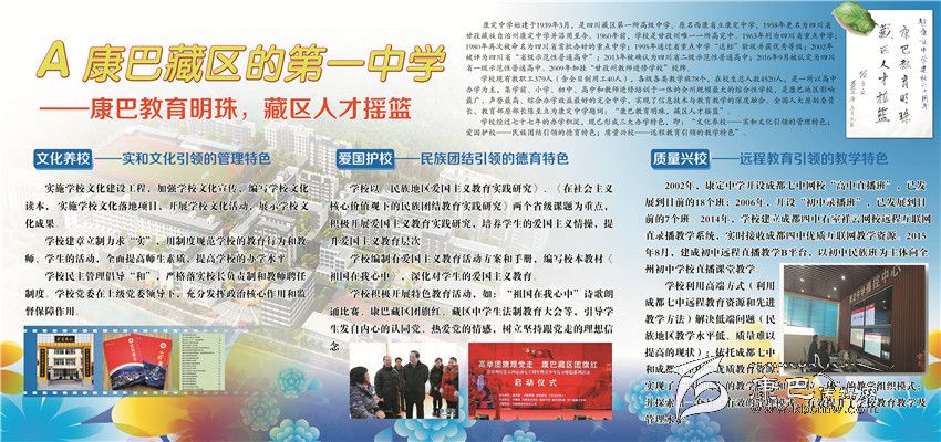 輝煌業(yè)績俱往矣,而今邁步從頭越。康定中學成功創(chuàng)建四川省一級示范性普通高中,康定中學歷史翻入新的一頁。學校將圍繞“建盛德實學康中校,做豪邁和美康中人”的“康中夢”,把康中打造成全州基礎教育窗口、全省中學教育名校、全國藏區(qū)教育典范。