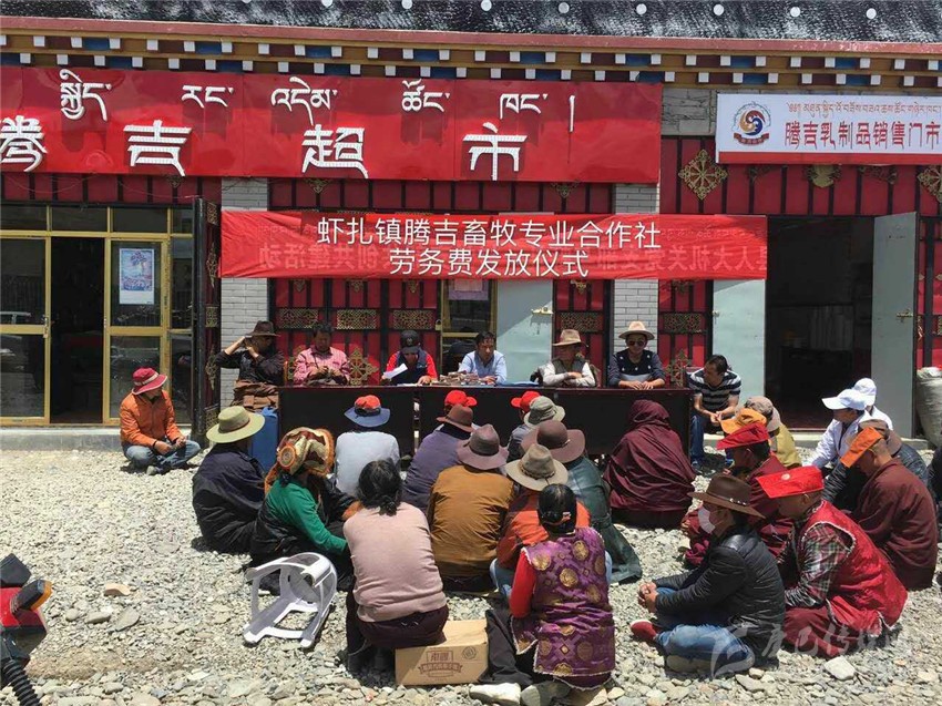 “精準(zhǔn)扶貧”貴在“精準(zhǔn)”,精確找準(zhǔn)“貧困癥結(jié)”,準(zhǔn)確“對(duì)癥下藥”;由于塔須村惡劣的自然環(huán)境制約,村民們還過(guò)著古老傳統(tǒng)的游牧生活,導(dǎo)致塔須村社會(huì)、經(jīng)濟(jì)、文化發(fā)展相對(duì)滯后,全村無(wú)集體經(jīng)濟(jì)產(chǎn)業(yè),屬于我州貧困村中的“貧中之貧”,以往傳統(tǒng)的扶貧措施猶如“灑胡椒面”,治標(biāo)不治本;“授人以魚(yú),不如授人以漁”,為讓塔須村能建立村集體產(chǎn)業(yè),村民們能掌握一門致富手藝,州水務(wù)局結(jié)合塔須村實(shí)際,多次派遣工作組深入塔須村,了解貧困戶生活現(xiàn)狀、致富愿望,聽(tīng)取村兩委干部建言,形成專題脫貧報(bào)告;鑒于牧民致富愿望強(qiáng)烈,村干部建言獻(xiàn)策,在州水務(wù)局的積極協(xié)調(diào)下,在蝦扎鎮(zhèn)黨委、政府的倡導(dǎo)下,經(jīng)石渠縣人大牽頭,通過(guò)州級(jí)各聯(lián)系單位、駐村幫扶工作組和村兩委的努力,整合各方人力、物力、財(cái)力,團(tuán)結(jié)協(xié)作,于2016年3月成立了“石渠縣蝦扎騰吉畜牧專業(yè)合作社”,并選舉出9名致富能手為騰吉專業(yè)合作社理事人選。“騰吉合作”乃飛騰吉祥之意,寓意著牧民群眾齊心協(xié)力,共奔小康。