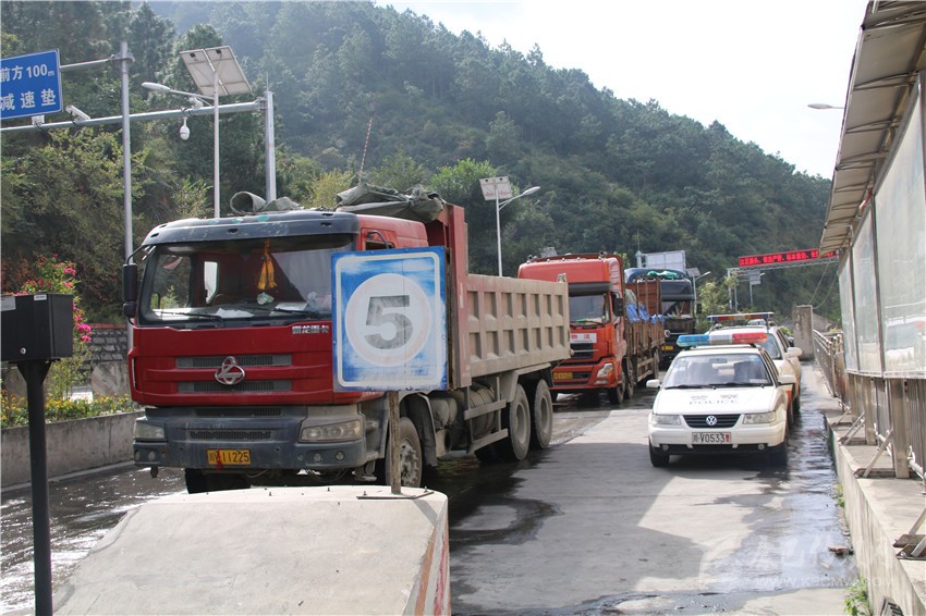 去年10月21日,全國將執(zhí)行新的貨運(yùn)車裝載標(biāo)準(zhǔn),將降低貨車運(yùn)載量。20日,瀘定檢測(cè)站迎來了大貨車運(yùn)輸高峰,當(dāng)天通過瀘定檢測(cè)站的進(jìn)州貨車就高達(dá)953輛,陡然增加的車流量,讓瀘定檢測(cè)站執(zhí)法人員忙得不可開交。凌晨1點(diǎn)左右,因距離檢測(cè)站數(shù)公里外道路正在施工,造成交通大面積擁堵。盡管不在工作職責(zé)范圍內(nèi),瀘定檢測(cè)站除值班人員留守外,交通路政、運(yùn)管、公安交警、特警全員上陣疏導(dǎo)交通?;謴?fù)通行時(shí),已經(jīng)是凌晨3點(diǎn)過。對(duì)于這樣的“家常便飯”,執(zhí)法人員已經(jīng)司空見慣。“不能在檢測(cè)站周邊造成交通擁堵,這是我們的職責(zé)”。