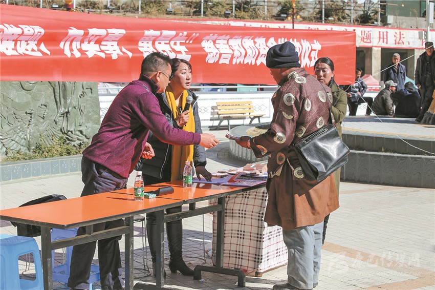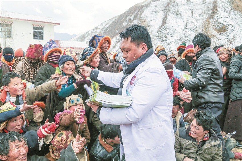 白玉縣集中開(kāi)展了政策文化衛(wèi)生科技法律集中服務(wù)“五下鄉(xiāng)”活動(dòng),在嚴(yán)寒中為近2000名群眾送去了溫暖?;顒?dòng)中,由省級(jí)宣講員松吉尼瑪帶隊(duì)的政策宣講組,用通俗易懂的“土話”、民間諺語(yǔ),為群眾講解了脫貧攻堅(jiān)等政策。同時(shí),新組建的縣藝術(shù)團(tuán)送上了精彩的節(jié)目。由縣人民醫(yī)院、藏醫(yī)院等單位組成的“送衛(wèi)生”服務(wù)隊(duì)開(kāi)展了現(xiàn)場(chǎng)義診活動(dòng),免費(fèi)為群眾提供醫(yī)療服務(wù)?!八涂萍肌焙汀八头伞狈?wù)隊(duì)進(jìn)行了科普和法律服務(wù),獲得到場(chǎng)群眾的由衷點(diǎn)贊。