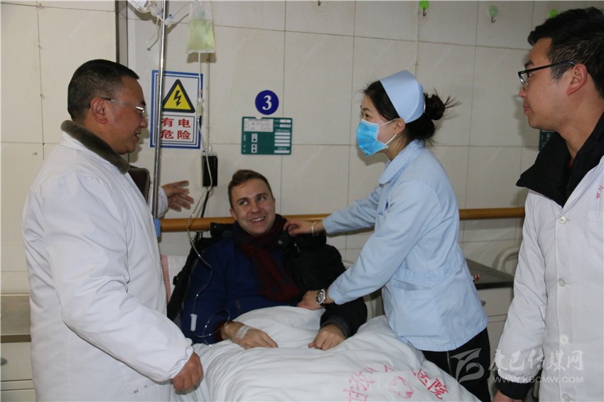 和國醫(yī)生正在給臨床病人檢查病情。一位來康定玩的俄羅斯小伙因患重感冒住進(jìn)了急救中心。正在輸液的他用比較熟練的中文激動地告訴記者:“這里的醫(yī)生服務(wù)很好,他們過年都沒有休息,我得了重感冒,經(jīng)過治療以及在他們的細(xì)心關(guān)照下,我的病情好多了?!?/span>