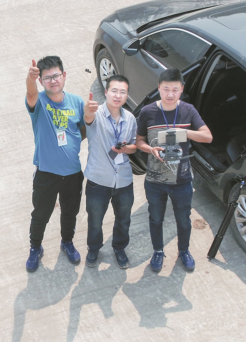 在航拍C11標(biāo)段時(shí),無人機(jī)模擬汽車在高速上快速行駛,結(jié)果撞上了橫跨兩山之間的光纜,機(jī)翼也被撞出一個(gè)豁口。