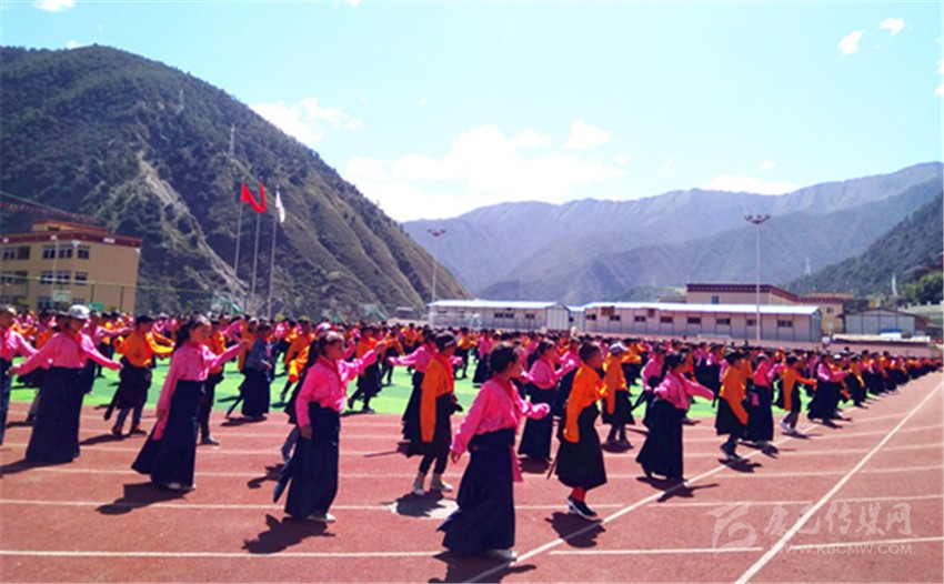 在雅江縣呷拉教育園區(qū),學(xué)生們在操場跳課間舞。