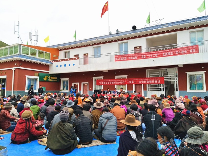 截至目前,已經(jīng)在康定、瀘定、得榮等9縣(市)63個鄉(xiāng)鎮(zhèn)和18座寺廟,開展基層宣講81場,覆蓋群眾和寺廟僧尼22000余人次,受到社會各界廣泛關(guān)注和農(nóng)牧民群眾的普遍好評。圖為州委宣講團(tuán)在德格開展宣講活動現(xiàn)場。