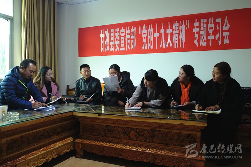 本網(wǎng)訊 (則瑪拉姆 文/圖)連日來,甘孜縣依托中心組、干部講堂、“三級(jí)三講”等學(xué)教平臺(tái),圍繞“黨的十九大精神、《中國共產(chǎn)黨章程(修正案)》、習(xí)近平新時(shí)代中國特色社會(huì)主義思想、決勝全面建成小康社會(huì)”四大專題開展學(xué)習(xí),采取專家輔導(dǎo)講、專題研討學(xué)、集中考學(xué)評(píng)等形式,迅速組織廣大黨員干部原原本本學(xué)、聯(lián)系實(shí)際學(xué)、突出重點(diǎn)學(xué),切實(shí)把黨的十九大精神轉(zhuǎn)化為謀劃發(fā)展的思路、促進(jìn)發(fā)展的舉措、領(lǐng)導(dǎo)發(fā)展的能力和推進(jìn)發(fā)展的合力。圖為11月6日下午,縣委宣傳部組織全體職工專題學(xué)習(xí)黨的十九大精神。