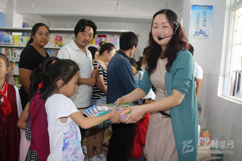 老師正在給同學(xué)們發(fā)新書(shū)。