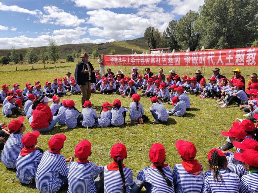 本網(wǎng)訊 9月4日,理塘縣甲洼鎮(zhèn)向陽(yáng)寺外的草壩上,鎮(zhèn)小學(xué)的全體師生津津有味地聽“五老”志愿者講先烈們的故事和翻身農(nóng)奴如何過(guò)上幸福生活的鮮活事例。