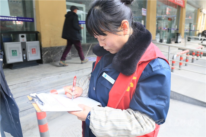 工作人員仔細(xì)記錄每輛駛出客車情況。