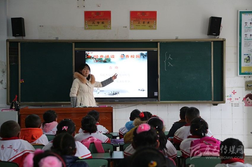 道孚縣二完小學(xué)生誦讀經(jīng)典古詩(shī)。