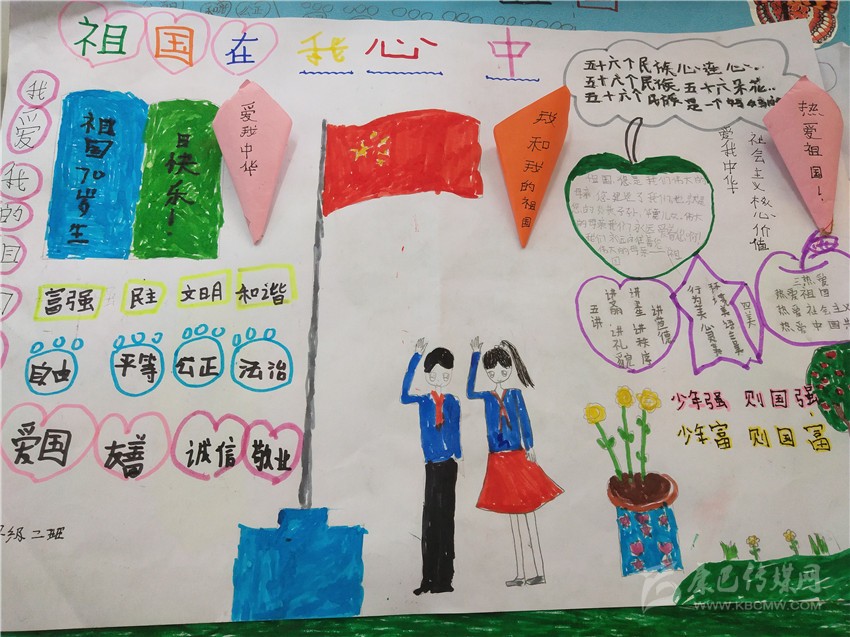活動(dòng)在該校三至六年級(jí)學(xué)生中開展,老師為學(xué)生提供創(chuàng)作所需材料,讓學(xué)生自由想象發(fā)揮,把自己心中對(duì)祖國(guó)的熱愛躍然紙上。各班精心組織,不到兩個(gè)小時(shí)的時(shí)間,一幅幅主題鮮明、內(nèi)容豐富、色彩明快的手抄報(bào)誕生了,孩子們的作品充滿了對(duì)祖國(guó)深深的愛與衷心的祝福。何俊鑫 文/圖