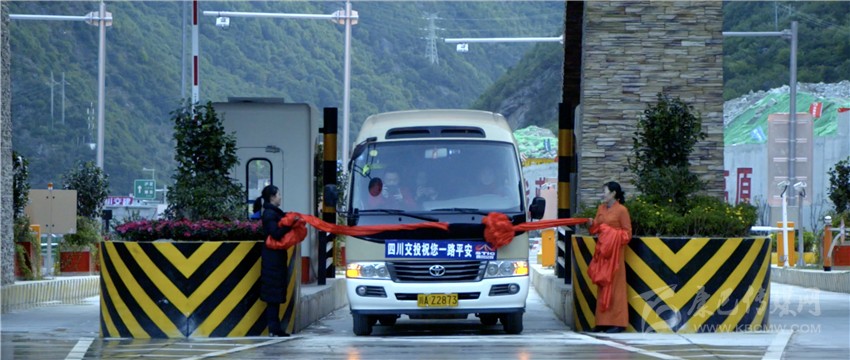 “木雅古碉”建筑矗立兩旁、六出四進通道一字排開;巨大熒幕流光溢彩,連接通道窗明幾凈;從無人機航拍畫面可以看到,一面巨大的五星紅旗,已在站頂平層鋪展開來……9月28日上午8時整,一輛客車從升航特大橋駛來,撞破紅綢駛向康定城,旁邊車道上等待多時的車輛依次行進,雅康高速公路上規(guī)模最大的收費站——康定收費站正式啟用,康定連接線和入城大道通車?!翱刀ㄟB接線建成后將極大提高雅康高速公路進入康定城區(qū)車輛通行效率、有效改善康定入城交通的擁堵狀況?!辈貐^(qū)高速公路公司相關負責人如是說。