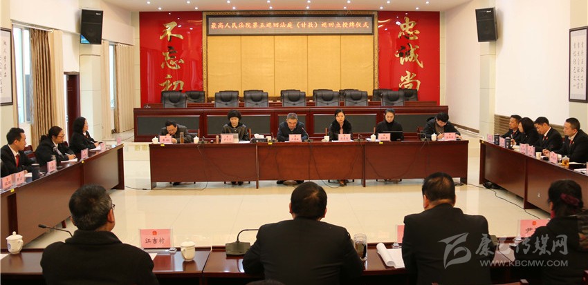 本網(wǎng)訊 11月13日,最高人民法院第五巡回法庭(甘孜)巡回審判點(diǎn)授牌儀式在甘孜州中級(jí)人民法院舉行,此次在四川設(shè)立兩個(gè)巡回點(diǎn),州中級(jí)人民法院是授牌點(diǎn)之一。最高人民法院第五巡回法庭分黨組成員、副庭長(zhǎng)汪國(guó)獻(xiàn)為該院授牌并在儀式上作講話,甘孜州中級(jí)人民法院黨組書(shū)記、代理院長(zhǎng)付寶接牌并作相關(guān)工作匯報(bào)。