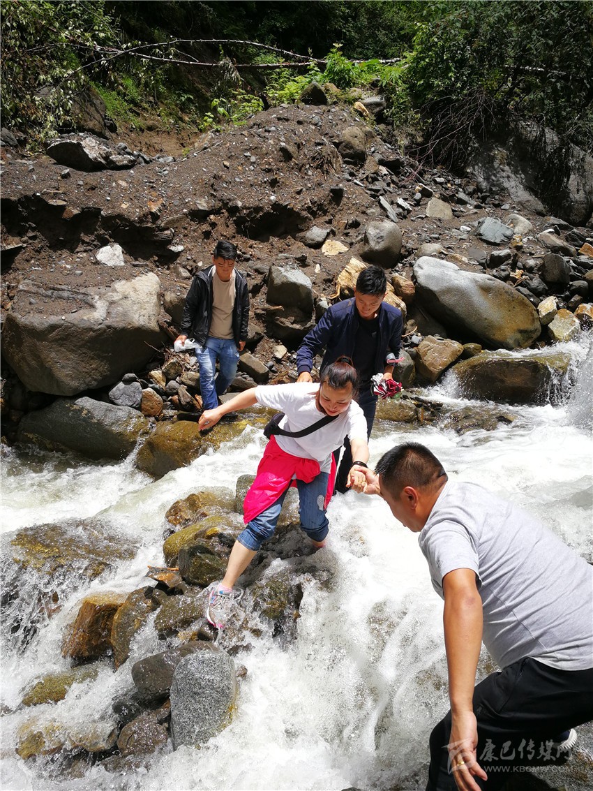 丹巴縣紀(jì)委監(jiān)委干部在半扇門(mén)鄉(xiāng)火龍溝三村涉水入村開(kāi)展督查。 圖片均為州紀(jì)委景蓉提供