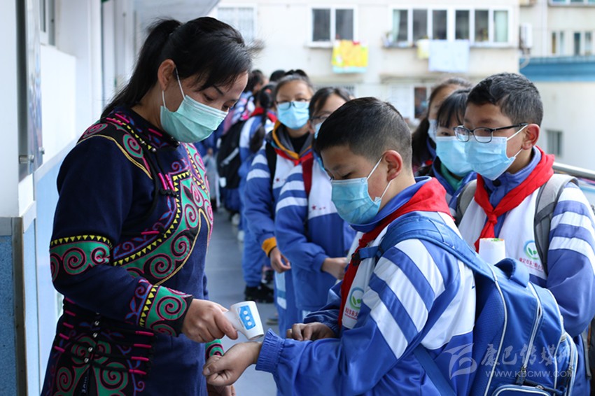 在九龍縣高級中學(xué),副校長帶著輪值教師早早站在各自崗位上,負(fù)責(zé)體溫檢測的教師提前到崗,逐個(gè)對學(xué)生進(jìn)行體溫檢測,并引導(dǎo)學(xué)生進(jìn)入班級,如在體溫檢測中發(fā)現(xiàn)學(xué)生體溫達(dá)到及超過37.3℃,有咳嗽、胸悶等現(xiàn)象,立即進(jìn)行復(fù)測,體溫仍然超過37.3℃的要將其引導(dǎo)至“應(yīng)急隔離緩沖區(qū)域”,并與學(xué)生的班主任聯(lián)系,及時(shí)告知家長,提示家長到學(xué)校門口接學(xué)生,同時(shí)對該名學(xué)生做好手、鞋的消毒工作。家長到校時(shí)嚴(yán)禁家長進(jìn)入學(xué)校,由值班領(lǐng)導(dǎo)帶領(lǐng)學(xué)生(保持一米間隔)送交家長,做好學(xué)生離校記錄,校醫(yī)也要做好個(gè)人防護(hù),預(yù)防飛沫傳播和接觸傳播,相關(guān)廢物進(jìn)行有效消毒處理等。