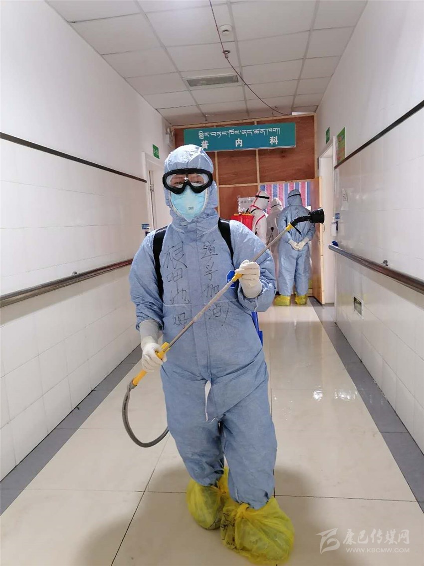 除了日常護(hù)理,根呷她姆的還要負(fù)責(zé)每日病房的消毒工作、垃圾清理以及清潔衛(wèi)生工作。“消毒工作格外重要,必須做到不漏一個(gè)死角?!备人窂?qiáng)忍著84消毒液刺激引起的嗆咳及生活垃圾引起的惡心發(fā)嘔,一絲不茍,任勞任怨,做好每一天的消殺清潔工作,讓病毒無處遁形。在同事面前她是護(hù)士長、家長,在病人面前,她是護(hù)士、護(hù)工、清潔工、家屬、心理老師……根呷她姆每天在各種角色間轉(zhuǎn)換自如,不怕臟、不怕累、不怕苦,拼盡全力只為打贏這場(chǎng)沒用硝煙的戰(zhàn)爭(zhēng)!