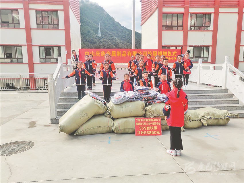 本網(wǎng)訊 9月8日上午,廣東省中山慶璉金屬制品有限公司向白玉縣第三完全小學(xué)捐贈(zèng)了359套校服,總價(jià)值約53850元。圖為學(xué)生代表現(xiàn)場(chǎng)演唱歌曲《聽我說(shuō) 謝謝你》,表達(dá)對(duì)愛心企業(yè)的感謝。